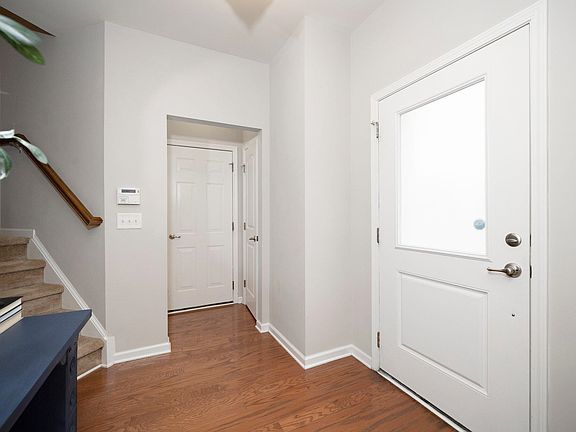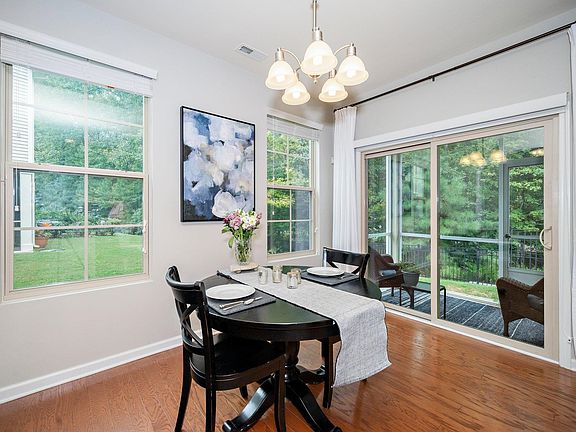 Great location for the lucky buyer. Nicely maintained end unit townhome. Two car garage. First floor open plan. Hardwoods in family room, kitchen, half bath and dinning area. Kitchen has recessed panel cabinets, white ceramic tile backsplash, stainless steel appliances, granite countertops and walk-in pantry. Dinning area and granite kitchen bar. Nice light from family room windows and screen porch. Enjoy HOA maintained yard. Trees and fence in back screen greenway. Easy greenway access to owner. Upstairs has three bedrooms, two full baths, and laundry room. Washer, dryer and refrigerator convey with home. Professionally cleaned and ready for new owner. Floor plan confirms 1890 sq. ft. See MLS docs for floor plan, HOA docs (roof + maintained by HOA ), NCRPD and Oil and Mineral Rights Disclosure.