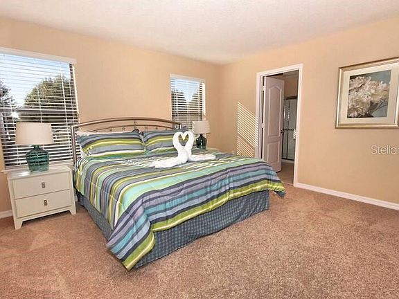 Location, location, location. Situated within 15 minutes of Disney, this home is perfect whether you are looking for a primary home, second residence or investment property. With 5 bedrooms and 4 baths, there is space for all your needs. The master suite is downstairs with four additional bedrooms upstairs. The home comes fully furnished and has bookings in place. Don't miss out on this fantastic gated community home.