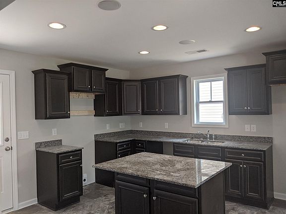 - RoomKitchenFeatures: Granite Counters, Kitchen Island, Pantry, Recessed Lighting, Floors-Vinyl, Cabinets-Stained