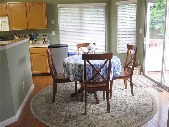 Charming, easy to live in Contemporary designed home on a CUL-DE-SAC. GREAT ROOM floor plan with CATHEDRAL CEILING lends itself to an open feeling from the FORMAL DINING ROOM to the EAT-IN KITCHEN. The BAY WINDOW offers a view of the WOOD DECK. The HOT TUB with AWNING SURROUND conveys and there is a concrete pad for basketball. There are NO REAR NEIGHBORS. MASTER BEDROOM has a large WALK-IN CLOSET (8' x 8') which has been professionally fitted by California Closets. The FULL BASEMENT is partially finished with a 23 x 16 RECREATION ROOM and LARGE ROOM FOR STORAGE. HARDWOOD FLOORS on the entire main level were installed in 2006; NEW CARPET, BLINDS and ROOF were installed in 2008; NEW CENTRAL AIR CONDITIONER installed in 2010 and NEW WATER HEATER installed in 2013. This lovely home has been freshly painted in the latest color scheme.