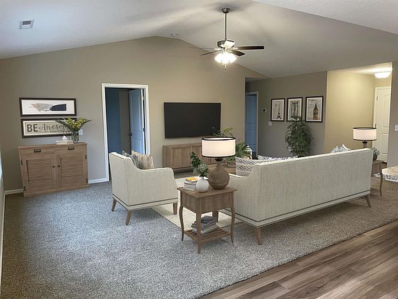 - Ceiling Fan(s), Vaulted Ceiling(s), Eat-in Kitchen, Entrance Foyer, Kitchen Island, Open Floorplan, Main Level Bedroom Suite, Custom Cabinetry