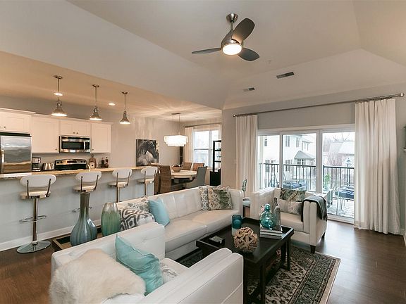 SECOND (TOP) FLOOR 2BR, 2BA CONDOMINIUM in the Peninsula Neighborhood. Comfortable, upscale 1,260 sq-ft condo in Founders Row w/ private 2-car garage w/ 12' ceiling. Features trey, vaulted, & 9' ceilings, built-in bookshelves, fireplace, granite kitchen and bath countertops, & large covered balcony. Building amenities include intercom/security. Building walks onto Founders Square park and greenscape. On bus route & handy to trails, Iowa River valley sights, & the Iowa City area's sought-after amenities.