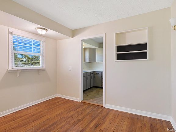 Welcome home! This light and bright 2 bedroom, 1 bath bungalow is waiting for the perfect owner. Wood flooring throughout, multiple closets, and gas fireplace are some of the features of this 736 SF home. Featuring spacious front and backyard on a quiet street, this house is waiting for your personal touch. Great gardening spaces with an enclosed backyard. The attached garage offers an additional place to hangout, work on hobbies, setup an office, or park your car. Within walking distance to the Aurora Arts District, this cute home is perfect for anyone wanting to get away from city life, while still close enough to city activities. DIA, Stapleton, Stanley Marketplace, and Lowry are minutes away. Showings start Sat. Mar 23