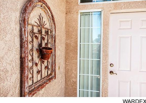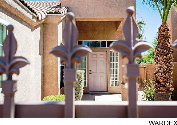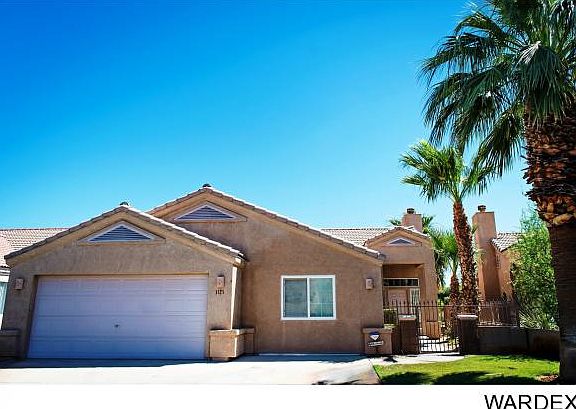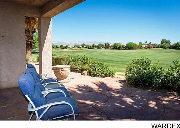 Wow! Can you smell the jasmine bushes on the covered patio overlooking the spectacular golf course greens and mountains? Unique floor plan with 3 bedrooms, 2 baths, spacious living room area with fireplace, boat deep garage. Move in Ready! 55+ Active Adult gated community with gorgeous 18 hole golf course with lakes, pool, clubhouse, wide open desert riding trails adjacent to neighborhood. Near Avi Casino, Colorado River launches, in between Lake Havasu City and Lake Mohave, only 90 miles to Las Vegas.
