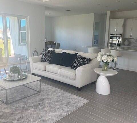 This single story home optimizes space for modern living. Tile covered terrace provides natural shade, the kitchen divides the Great Room and casual dining for an organized look. The owner's suite is the ideal co living space with 2 walk in closets and private bathroom.