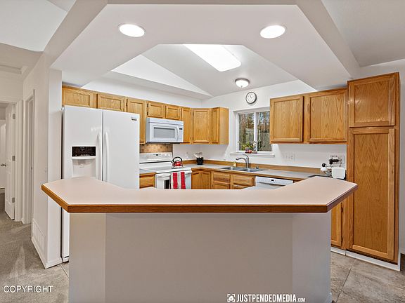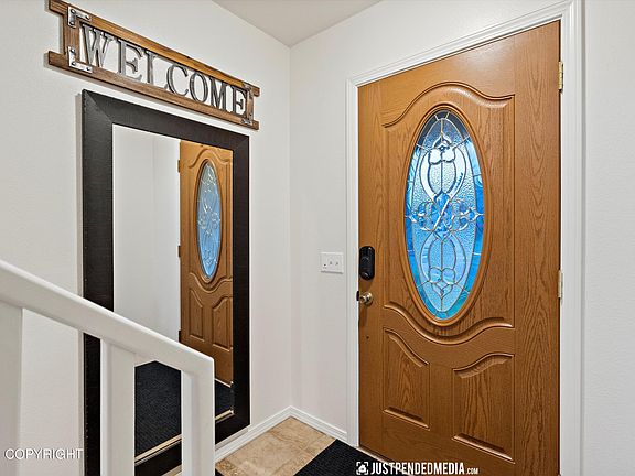 Rare find at the back of a cul-de-sac and GINORMOUS fully fenced back yard! Apple trees, cherry trees, raspberries and planters galore. Gardeners Dream!!! 2-tiered deck that is wired & ready for hot tub. Home is turn key. Open concept kitchen, vaulted ceilings, wood burning fireplace, & new carpet throughout. 5* energy rating w/newer furnace & water heater. Tons of upgrades. This is a must see!Close to parks and trails. Cross the street to go to the South Anchorage Sports Park or Dog Park. Right from your front door, tons of fabulous walking trails. You can even go down to the inlet in just a few blocks. Short drive to restaurants, schools, and shopping. Easy commute to anywhere!