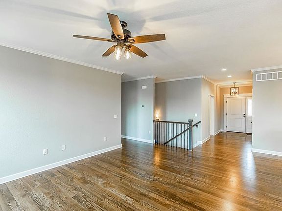 Just completed! 4 bed/3 bath/3 car ranch home w/walkout bsmt near Langston Hughes & K-10/I-70! Great kitchen w/granite countertops, island, SS appliances -- frig & gas range too! Nice dining area. Living rm has cozy fireplace w/TV hookup. Gorgeous hardwood floors! Master bath has double sinks/oversized shower/large closet! 2nd bed/office, full bath & laundry/mud rm on main level. Walkout basement features 2 beds, full bath & rec/2nd living. Covered Deck! Sprinkler. *Some images virtually staged.
