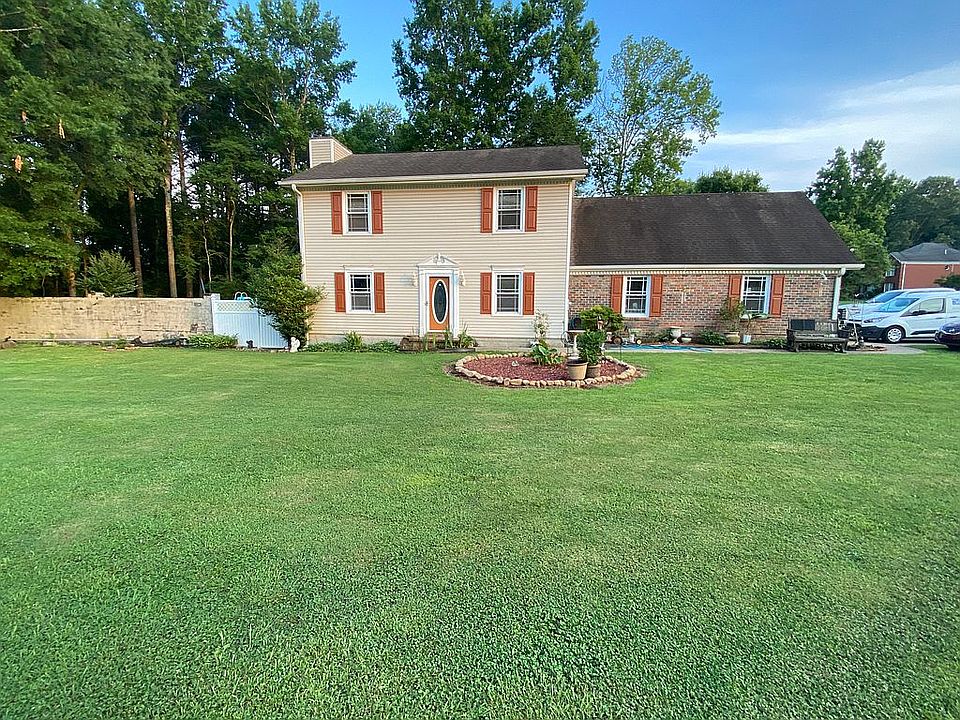 Brick/vinyl siding, 2 story, 4 bedrooms plus x-large activity room, 2 car garage, concrete block fenced back yard with in-ground pool and pool house, covered patio at poolside. 2 full bathrooms. Corner lot home with large front yard. Great neighborhood close to everything city has to offer. Great school district.