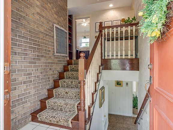 Across the top floor, you'll find another primary suite with full bath, its own access to a balcony, brand new carpet and fresh paint. Two more bedrooms, hard wood floors, and a hall bath round out the top floor. Make sure to not miss all the closet space throughout. Downstairs, discover a second living room/den with built-in bookshelves and storage and easy access to beautiful outdoor living on the tile patio. Two more bedrooms (that's six total) and a fourth full bath are on the lower level, just inside from the 2-car garage, and 2-car carport. If you choose, the second laundry option for hook-ups can be found in the garage.