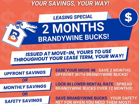 Be aware of LEASING FRAUD! Brandywine Homes USA does not advertise on Craigslist or Facebook and we will never ask you to wire funds!