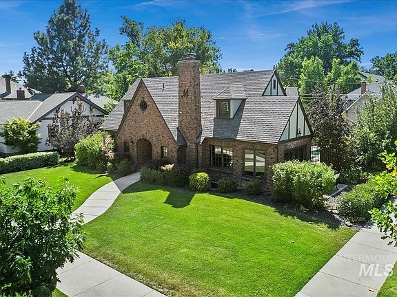 Welcome to this quintessential 1935 Tudor Revival in Boise’s iconic North End. This clinker brick treasure blends historic charm with modern updates on a large corner lot. Arched passageways, custom millwork, and wood-clad windows throughout, main home offers spacious 4 beds with walk-in closets plus loft/bonus/creative space and theater room featuring a Control4 smart lighting/audio system throughout. Main-level primary ensuite features dual vanities, soaking tub, walk-in shower & custom closet. The chef’s kitchen boasts ceiling-height cabinetry, quartz countertops & granite island, professional-grade gas range, commercial hood with warming lights. Add to that the walk-in pantry, and wet bar, including wine fridge. The above garage ADU (professionally designed & built in 2024) has a private entrance and income potential. The backyard is a true retreat with a heated pool and mature landscaping. Every amenity thoughtfully covered and just minutes from downtown, Hyde Park and the Boise River Greenbelt.