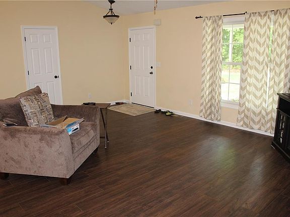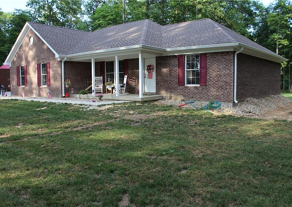 Secluded 3-Bedroom, 2-Bath, Brick ranch on 5.7 acres custom built in 2016. Spacious great room open to kitchen with vaulted ceiling. Kitchen offers center island, solid surface counter tops, and appliances to remain. Dining area with sliding door leading to open patio. Large master bedroom with private master bath. Master bath features whirlpool tub, double sink, separate shower, and walk-in closet. Two other bedrooms with full bath, Separate laundry room. Two car attached garage. 32x40 pole barn with concrete floor and electricity. Mostly wooded lot with small stream.