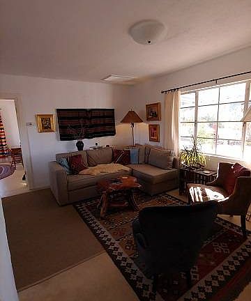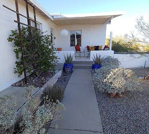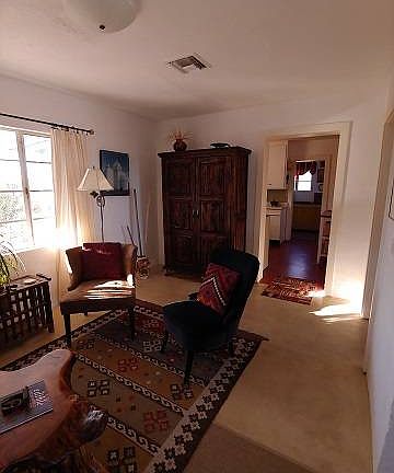 This 2 bedroom, 2 bath home has a bonus room off the second bedroom. It could be used as a computer room, music room, craft room, or storage room. One can watch the sunset from the open porch on the front or from the covered patio on the back. One bedroom, one bath is located on the southwest side of the house, while the master bedroom, bath is located on the east. The house sits on 4 lots. Across the alley is another 3 lots with a workshop. This parcel is zoned commercial.