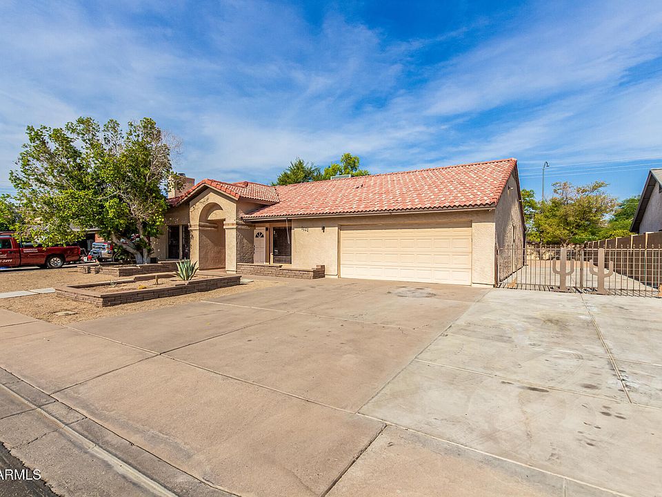 Single story home in prime location with NO HOA & FHA assumable loan available. Own this thoughtfully designed 4-bedroom home complete with a 2-car garage, RV gate, and low-care front yard. Discover vaulted ceilings, tile flooring, ceiling fans, and custom paint that complements any decor. Enjoy the formal living room with a cozy fireplace, a dedicated den/office highlighted by trendy barn doors, and a spacious great room perfect for gatherings. The kitchen offers ample honey oak cabinets, tile backsplash, built-in appliances, solid surface counters, and a breakfast bar. Large main retreat boasts plantation shutters, outdoor access, an ensuite with a sit-down shower, and a walk-in closet. Secondary bedrooms have mirrored door closets for added comfort. Oversized backyard has a covered patio ideal for unwinding. The open lot is a blank canvas to create a backyard paradise of your choosing.