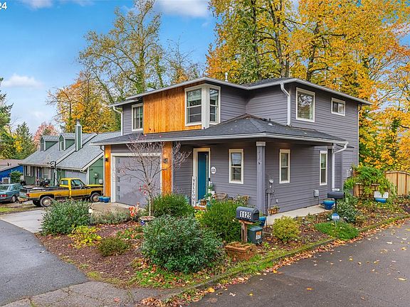 Like new contemporary in the beautiful town of Wood Village! Great proximity to freeway access, groceries, stores, restaurants and more! Great room floorplan with gas fireplace, tall ceilings, laminate flooring. Gorgeous kitchen w/ quartz counters, island, soft-close drawers, tile backsplash, stainless appliances. Primary suite with shower, double sinks and walk in closet. High-end finishes! Guest bath includes a tub. Large, over 1/4 acre lot with beautiful covered deck, and leaf guard gutters. All appliances including refrigerator, washer and dryer included. Incredible price for like brand-new construction!