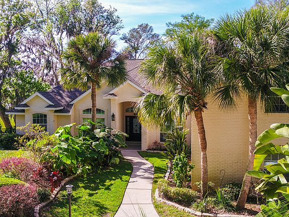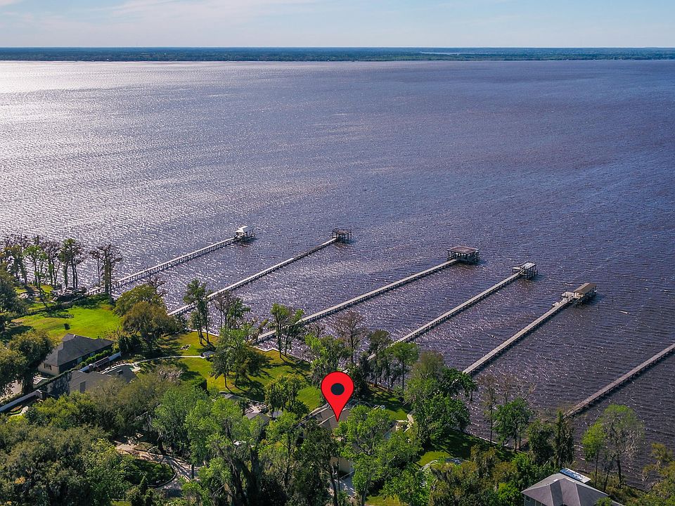 Welcome home to breathtaking sunsets & stunning views, located on the point of the Saint Johns River with panoramic views. This all brick home is situated on just over a half acre with 101 ft. of river frontage w/ covered gazebo, in-ground heated screened pool, corrugated bulkhead, dock & floating dock, two boat lifts, & covered boat house with water & electric. Home offers high ceilings, detailed molding, travertine flooring thru-out first floor & wood-like tile plank flooring on the second floor bonus/guest room & bath. Home has special features for ADA compliant owners to include walk-in master jetted tub, bedroom next to master suite was converted to a walk-in closet w/ unique pull down closet system, ramp for entrance from three-car garage & ramp to pool & patio deck
