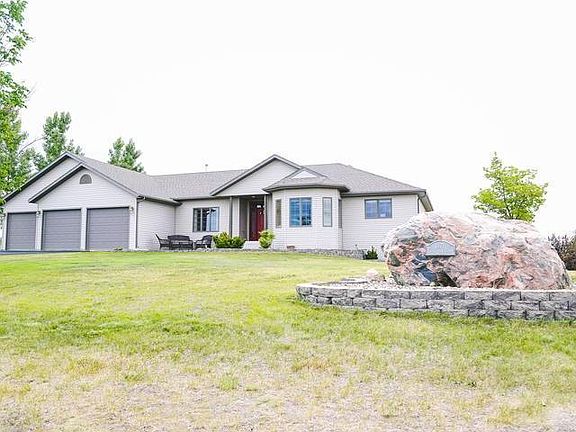 The beautiful home you have been searching for! A five bedroom, four bathroom home for sale in quiet rural subdivision just minutes east of town. On the main floor you'll find a spacious kitchen with a large island, double oven and new refrigerator and dishwasher. Off the mudroom you'll find an office and main floor laundry with a half bath. The main floor has two bedrooms and a master suite with a large walk-in closet. The basement has an additional two bedrooms, one of the bedrooms has an oversized walk in closet! The lower level also has a bathroom, two large storage closets, tons of storage in the mechanical room, a game room area with pool table, and a media room with 7.1 surround sound theatre with an 110 inch screen. Brand new carpet throughout the basement. There is audio throughout the home including the large two tier deck freshly stained and the oversized three stall garage with large work area and camper pad. Amazing views, amazing home! Call for a showing today!