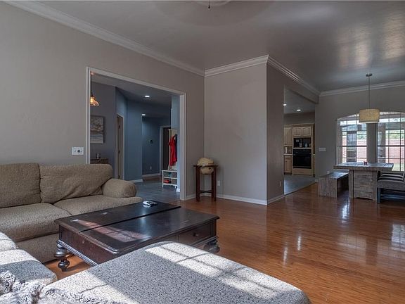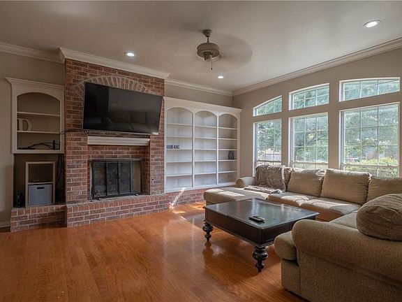 This home needs lots of friends to entertain! The spacious living room, oversized kitchen island and the glassed in patio leading to the back yard prove it! You'll love all of the beautiful built-ins that accentuate the brick fireplace in the living room and provide extra storage in the kitchen. The heightened ceilings and natural light will make your guests feel right at home! The wood floors throughout the bedrooms and living room contrast beautifully with the tile in the kitchen and the extra large laundry room. There are several mature trees on the property that give great curb appeal and make spending time on the covered back patio with company even more enjoyable! Grab a friend and come see it today!! Reserved items include: washer and dryer.Roof is under warranty.
