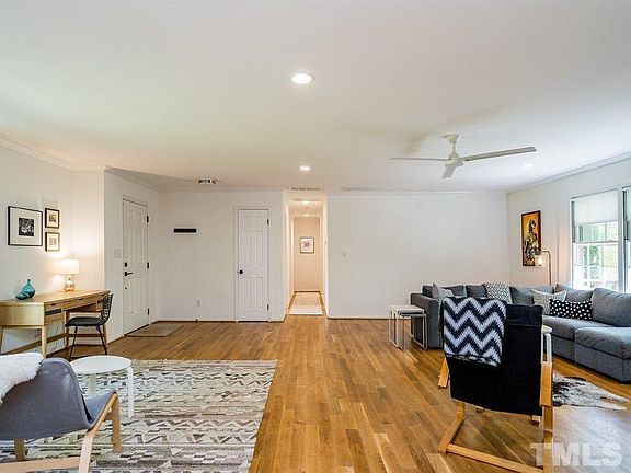 This Meticulous RANCH REMODEL has the WOW Factor! The gutted interior was brought to a BRIGHT & OPEN Floorplan that feels like a New Home! Numerous, QUALITY UPDATES include a NEW Subfloor & White Oak HARDWOODS, NEW Electrical, a Gorgeous, Contemporary KITCHEN w/new cabinets, appliances & counters! Expanded Master Bath w/Spa Shower! Encapsulated Crawlspace! New Doors & Fixtures! NEST Thermostats! All Brick! Large Workshop & Storage! The Large DECK backs to PRIVATE, WOODED Setting! PRIME Cary Location!