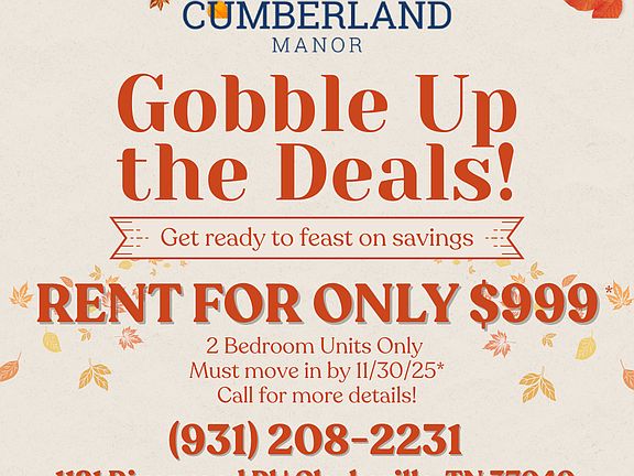 Welcome to Cumberland Manor where comfort meets affordability! Our spacious one, two, and three-bedroom apartment homes are designed to fit any budget and lifestyle.