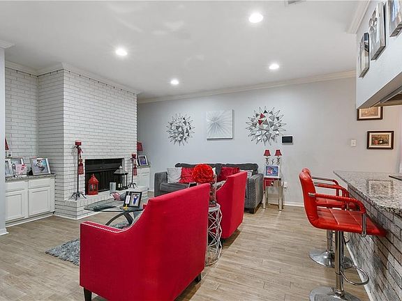 Upon entering, you are greeted by a welcoming main living area that's open to the kitchen. The open-concept design creates an airy and bright atmosphere for both relaxation and entertaining guests. The living room features a wood burning fireplace creating a warm and inviting ambiance.