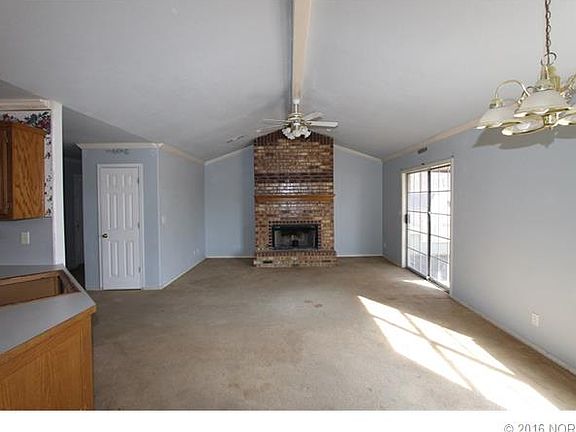 Great starter home or investor property. Great curb appeal & backs to school. 3 bdrm, 2 bath, 2 car garage. Living has high ceilings & wood burning FP