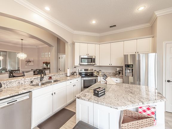 RARE Find - Imagine your new home with an interior looking like a 2020 Model and yet in a community that is full of Large & Mature Oaks, Pines & Palms. That community is Turnberry in World Golf Village. There are Lots of upgrades to Brag about. This one-story beauty boasts stately arched doorways and windows, 10-12' ceilings, domed art niches, 7 1/4'' crown molding, tall baseboards, custom built-in's, gas fireplace and wide-plank porcelain tile floors throughout (except baths). Gourmet Kitchen enjoys white 42 inch wood cabinets (note pull outs that make for easy access of items that are usually out of reach), Granite counters, Prep Island, SS Appliances, Breakfast Bar, Computer work station and more. Formal Dining Room creates a Showcase Dining Experience.