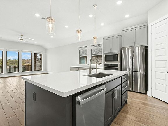 This high-end Perry Homes residence offers an exceptional blend of comfort, privacy, and community living in the highly desirable Wolf Ranch neighborhood of Georgetown. Featuring 4 bedrooms, 3 full bathrooms, and a dedicated office, this thoughtfully designed home is filled with extensive upgrades and showcases a peaceful greenbelt view. The covered back porch overlooks the serene natural backdrop, creating a private outdoor retreat perfect for relaxing or entertaining. The backyard is further enhanced with a summer outdoor shower, adding a resort-like touch and elevating everyday living. Just minutes away, residents enjoy access to a brand-new community center featuring a modern fitness gym, a stunning resort-style pool overlooking green park space, a clubhouse, grilling areas, expansive event lawns, and a large playground. Wolf Ranch also offers two community pools, miles of trails, and beautifully maintained common areas. Convenience is unmatched the home is within walking distance to Wolf Ranch Elementary School and just steps from grocery stores, coffee shops, restaurants, and retail, including a major H-E-B located right around the corner. This home is a perfect place to unwind, enjoy privacy, and take full advantage of one of Georgetown's most vibrant and thoughtfully planned communities.