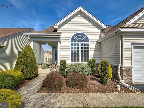 Carefree living at its best in Bucks County's Adult Premiere community of Heritage Creek. This well appointed Jefferson model features a side entry porch, transom windows over front door entry opening to foyer. Boasting sun-soaked rooms, an open floor plan, 9 ft. ceilings, formal living room with cathedral ceilings, dining room, island kitchen, breakfast room, family room hallway and master bedroom, as well as a bonus rear porch. A neutral and pleasant color pallet creates an easy transition for any buyers decor. Kitchen offers 42 inch cabinets,granite countertops, lots of counter space, pantry and a breakfast bar. Dining room (presently being used as a den/study has custom built-ins and is great for just sitting back and relaxing). Family room w/sliding glass door opens to covered porch with stairs to backyard. Master bedroom complete with a walk-in closet, large updated custom tiled master bath with double sink vanity,separate shower and new walk-in jetted tub that you certainly will enjoy at the end of a day. Second bedroom with ample closet space, hall bath completely updated with custom tile, vanity and shower. Full daylight basement is a special feature of this home with lots of room for storage, hobbies, workshop, etc. Garage with inside access has an extra three feet added for extra storage. Heritage Creek has created a landmark lifestyle with an abundance of amenities, the Marquis Club and Spa, large clubhouse with catering kitchen for special events, indoor and outdoor pools, fitness rooms, library, ballroom, club rooms with pool tables, shuffleboard, tennis courts, Bocce courts and so much more. Heritage Creek offers you a location second to none. Make this lovely home yours!!!