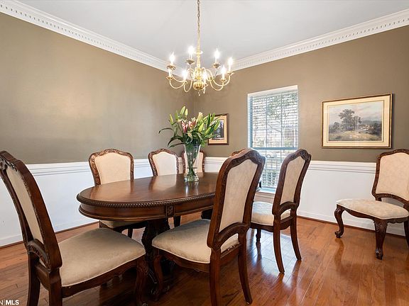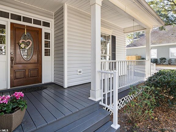 Nestled beneath beautiful oaks in one of the best locations in West Mobile, this beautiful two-story vinyl sided, low maintenance home is located on a cul-du-sac and is close to shopping, restaurants, hospitals, the University of South Alabama, Springhill College, the airport, and the Coast Guard base. Greet family and friends in the spacious foyer and invite them to the right into the charming formal dining room where festive meals will be lingered over and enjoyed. Straight ahead from the foyer is the impressive great room with soaring ceilings, hardwood floors, loads of natural light and a cozy wood burning fireplace - the perfect spot to entertain or just enjoy a quiet evening with the family. The fireplace is flanked with built in bookcases and a view of the beautiful backyard. An archway separates the great room from the breakfast area where casual meals will be enjoyed while discussing the day's events. The breakfast area is open to the massive kitchen that is filled with tons of pretty white cabinets, granite counter tops, an electric cook top, double ovens and a center island that provides fantastic additional space for meal preparation. Just off the kitchen area is a large laundry room with lots of cabinets and storage space. Next to the laundry room is a powder room for the convenience of visitors. When the day is done, retreat to the opposite side of the home to the relaxing oasis of the primary bedroom with new LVT flooring. Then walk into the primary bath where the oversized double vanity will make getting ready for the day a breeze. The walk-in shower is certain to bring a smile and the jetted tub will soothe the stresses of the day away. Upstairs the spacious landing provides room for an office desk but there are other options for office space, if needed. There are three nice sized guest bedrooms with large closets and a full bath located conveniently in the hall. The third bedroom was used as an office and has a Jack and Jill bath that connects to