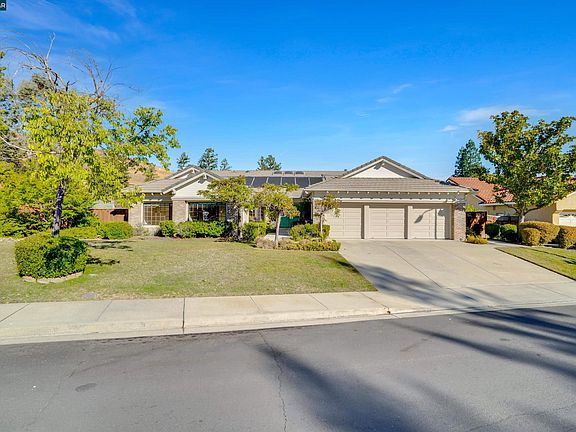 PRICE IMPROVEMENT! Nestled in the highly sought-after Old Ranch Estates neighborhood of San Ramon, this light, bright, lovely Davidon- built single-story home sits on an expansive .55-acre lot with NO HOA- amazing! As you step inside, you’re greeted by elegant marble floors and soaring ceilings. The open-concept kitchen complete with a cozy breakfast bar and nook, flows seamlessly into the family room with built-in shelves and cabinets, and one of three fireplaces. The luxurious primary suite features brand-new carpeting, two walk-in closets, and a spa-like ensuite with jetted tub, new flooring, and vanity for getting glam. A sparkling swimming pool makes this backyard perfect for entertaining and relaxing, and offers privacy with no neighbors on one side. The storage shed is ready for all of your pool toys. There is work space and cabinets in your 3-car garage. Top-rated San Ramon Valley schools. Convenient access to 580 & 680 freeways, parks, and shopping make this a must see property! Get ready to be home for the holidays!