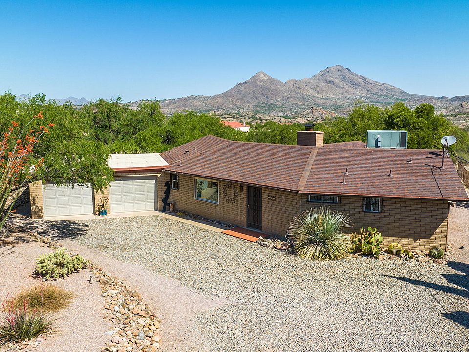 Fully fenced 2 bedroom/2 bath home features gorgeous see-through native rock fireplace, beautiful views and mature shade trees. New septic tank installed and leach field repaired in April. Rainwater harvesting (2 units) for irrigation. Exterior metal shades from Tucson Rolling Shutters are on 2 windows & sliding glass door, with the other windows having decorative wrought iron grills. Great storage in the garage and a work bench too. Vacant lots on either side of subject property, 129-04-135 and 129-04-133 are included in this sale. Lot 129-04-132 (.62 acre) may be included in the purchase contract upon the condition that the offered price for all properties shall be the full listed price. Buyers should make all investigations of the 'green lot' they believe necessary & appropriate.