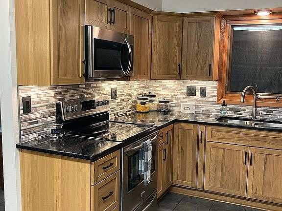 This wonderful family home is located close to Deerfield Park and the Spencer Y. Features a remodeled kitchen with quartz countertop and tile backsplash. The finished basement features a remodeled bathroom with a beautiful tiled shower and heated tile floors, oversized laundry room, bonus room and large family room, along with unique barn wood walls and storage room. The exterior was updated in 2020 with new siding, shingles, gutters, deck, and garage windows. Landscaping was updated in 2021. The large fenced in back yard is perfect for kids and pets! The oversized heated garage is perfect for a workshop or mancave with tons of built-in cabinets.