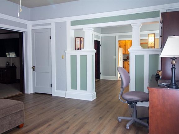 Peaceful location with a beautiful gem on the edge of town. Kitchen has been fully remodeled as well as the bathroom. New LVT throughout living and dining room. Home still has the original charm with original light switches, pocket doors, original doors and knobs, private breezeway entrance, and an amazing wood walls in garage with heat and AC. Fenced yard for kids or pets. There is also a 'secret passage' between rooms downstairs in the closet. This home has been loved and it shows. The new roof is being installed with Class 3 hail resistant shingles and some insurance companies give discounts when the home has this feature. Schedule your showing today! UPDATE: NEW ROOF IS ON!!