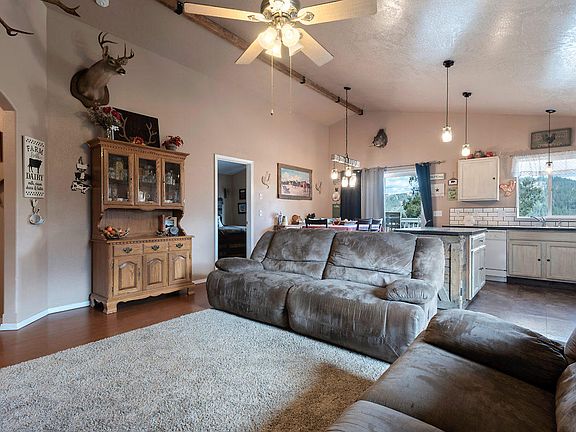 Come enjoy this modern turn key home in peaceful St. Maries! Enjoy single level living with 3 bedrooms and 2 bathrooms close to schools and parks and with a lovely view of the mountains across town from the deck. The open concept living area features refinished kitchen cabinets as well as new rustic lighting complete with a meticulously crafted wood wall. Numerous other recent upgrades include new countertops, subway tile backsplashes, tile flooring in bathrooms, and carpet in the master bedroom. A fenced yard is ready for family and pets to enjoy!