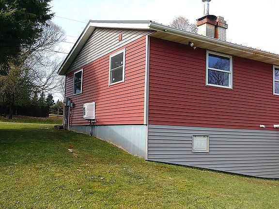 This is a three bedroom, 2 1/2 bath, ranch style home with new siding, insulation and house wrap, vinyl windows. All nicely situated on a half acre lot with a wooded back drop. There is an attached 2 car garage with an upper storage area and pull down steps for easy accessibility. On the north side of the driveway up along side of the garage is extra parking with a nice gravel base. Its perfect for parking your toy hauler, boat, camper or buildable. Inside you will find open concept dining room with access to a new 11x11 deck looking over a spacious back yard. The kitchen, with lots of pull cupboards creating super convenient access and plenty of counter space. Kitchen appliances are also included in the sale. Our home has a hydronic heating system with newer energy efficient gas boiler and a pellet boiler along newer gas water heater. The attic has also had isulation added. The large laundry room in basement has half bath with front load washer and dryer also included in the sale. This home has a fully finished basement with lots of storage, a dry bar and access to the back yard. Outside you will find two out buildings. One shed is a 10x12 with a treated wood deck floor, and there is a 14x20 with cement floor. There is a huge fenced in garden with large raspberry patch and strawberry patch, some mint tea and blueberry bushes. Of course, plenty of room to plant whatever else you would like. In addition, there is access to ATV trail is just a block over.