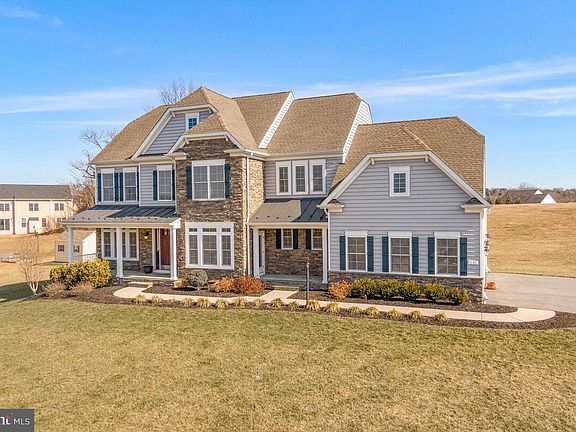 *** Call the listing agent on this property, Ryan Douglas! Get the correct information from the source. Visit www.CarrollCountyHome.info for more information!*** Must see 2013 built 3-car garage Craftsman style home situated on a premium 1-acre lot, located in the sought after Legacy Farms community, just outside Westminster among rolling hills and beautiful farmland. With over 4,900 sq ft of total space, this luxury Forty West constructed Estate home offers a stone front w/ a covered front porch, a gourmet kitchen w/ maple cabinets & granite countertops, hardwood flooring, and an amazing owners suite. The seller has added a 2 foot rear extension on all three levels, a morning room off the kitchen that leads out to a composite deck, a library/office space with its own private front porch retreat, and a warming stacked stone gas fireplace. Enjoy the spacious covered front porch and enter through the 8 foot tall craftsman style mahogany door w/ sidelights into the 2 story foyer that greets you with tons of natural light. The formal living room w/ decorative molding connects to a generous sized formal dining room that can accommodate a large table for guests. This custom gourmet kitchen includes granite countertops, decorative glass & stone backsplash, maple espresso cabinets w/ a matching wood hood, stainless steel appliances, and a large center island w/ a built in wine rack. The kitchen also features a 5 burner GE Profile gas cooktop, double ovens, a Kenmore Elite french door refrigerator, and another granite bar top for additional seating that opens to the morning room. Soak in plenty of light in this bonus room off the kitchen that leads through a large 8 foot slider onto a beautiful 12 by 22 foot composite deck w/ vinyl railings. This open floor plan allows for endless entertaining as you enjoy the oversized family room featuring a stone gas fireplace. The main level showcases hardwood flooring throughout, 2-panel glass french doors leading into the library w/ access to a second private covered front porch space, a powder room, mud room w/ wash sink, and a side entry 3-car garage. The second floor features 4 large bedrooms, 2 with their own en suite bathrooms and walk in closets. Bedrooms two and three share a buddy bathroom w/ dual sinks and a tub/shower combination. Hardwood flooring, tray ceilings w/ three piece crown molding, recessed lighting, and a huge walk in closet w/ built in shelving and storage for all your needs are included in this spacious primary bedroom. The primary en suite bathroom showcases upgraded maple vanity cabinetry, marble countertops, ceramic tile flooring, a separate shower, soaking tub, and separate sink spaces. The lower level space allows for countless possibilities, including plumbing for both a full bathroom, and rough in for a wet bar. Custom built wood storage, shelving and wine rack also convey. Create the lower level entertaining space you have always dreamed of. Additional features include dual zone heating/cooling, a 75 gallon hot water tank, ecobee thermostats, and a security system. This spectacular property is ready for you to call home, and will not last long.