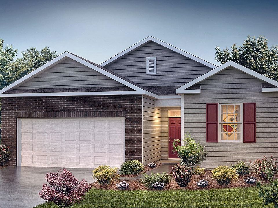 The Macon this Ranch with BRICK FRONT open floor plan with 9 foot ceilings, 3 bedrooms, 2 bathrooms sits on a private lot that backs to HOA green space. The open floor plan is perfect for entertaining, featuring granite counter tops, abundant counter space, Whirlpool stainless steel appliances with a 5 burner gas range, shaker style cabinets with handles and even crown molding ! Don’t forget the gas log fireplace in the Living area for those chilly nights. The 2nd bathroom has a raised vanity under mount sink and a beautiful venetian marble top , tub and shower combination. Your huge Landry room has additional storage and did I mention its air conditioned. The best for last !!! The Owners Suite will easily accommodate a king size bed with a walk in closet that is unheard of at this price point ! Owners bathroom with is an oversize shower that has a framed glass enclosure, raised vanity dual under mount sinks and a beautiful venetian marble top. The Smart Home package is included with no monthly fee, even a video doorbell. BRAND NEW HOME with WARRANTIES FROM THE LARGEST BUILDER IN THE USA! Including Hawaii.