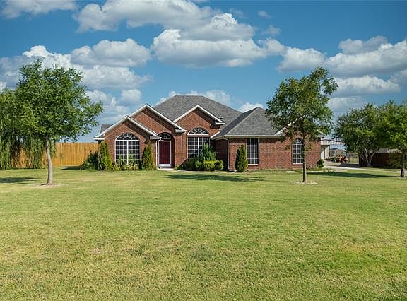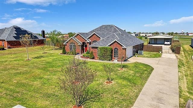 Highly desired acre+ lot in Forney. New porcelain tiles floors in master suite, newly painted interior walls, new hardware and fixtures, additional insulation in decked attic for additional storage. Light & bright combo living & dining area, open kitchen & breakfast next to large family room. Expanded 22x20 cedar wood covered patio with high roof pitch, plenty of room to entertain and soak in the 30' diameter above-ground pool, newly paved drive up 30x30 workshop with 220V electric & 600sf overhang-carport. Get your own piece of Texas in a wonderful neighborhood.