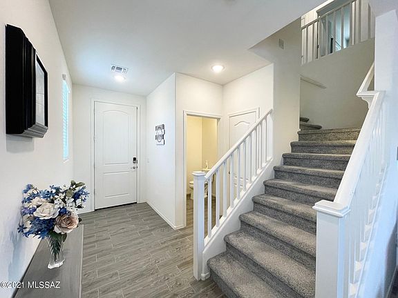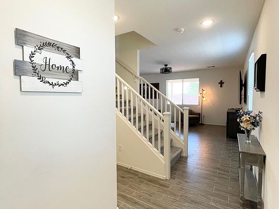 Gorgeous 3 bedroom 2.5 bathroom home located in newer Vail subdivision. This home has quartz countertops in the kitchen, white kitchen cabinets, dual a/c units, tile downstairs, upgraded stair banister, security system, extended covered patio, extra storage in garage, gates on both sides of the yard and soooo much more!! Location is close to schools and shopping. Buyers delight!!