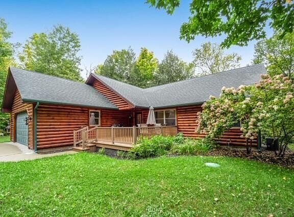 If you are looking for the PEFECT HOME FOR ENTERTAINING this is it. Let the Custom Built Lighted Bar in the Oversized Walkout Family Room make your home the place where family and friends will want to gather. A beautiful setting with a lovely stream running along the back yard. Outstanding Craftsmanship throughout this Open Concept Log home. Updated Stainless Kitchen and Baths, Wood Flooring, Vaulted Ceiling, A/C, Underground sprinkler system. Lower level living is made for entertaining and offers a large bedroom with an additional bath perfect for Family or guests. Oversized utility room perfect for your hobby room or extra storage. All of this conveniently located between Indian River and Alanson. Burt Lake public access is just a short walk or bike ride