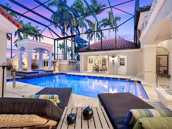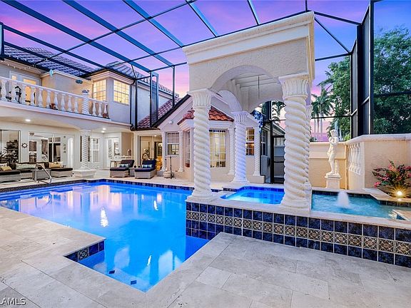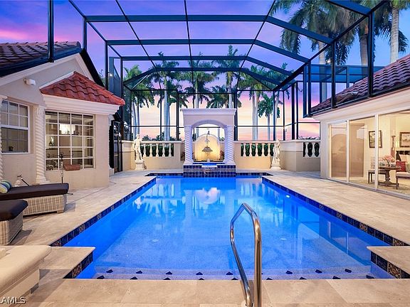With the purchase of a private membership, you will have access to the 18-hole championship golf course, you will enjoy 8 Hydro-Grid (clay) LIGHTED TENNIS COURTS, and a PRIVATE ISLAND! Gulf Harbour’s state-of-the-art HarbourView Center for Sports & Wellness was designed for Members to get healthy and stay healthy-Top Notch Staff in Pilates, Spa, Infrared Saunas, Weekly Fitness Classes, Yoga, personal trainers & Nutrition Experts. The CLUB HOUSE includes three separate dining areas - formal, semi-formal and casual – tailored for any occasion and social gathering. This iconic home with its Mediterranean exterior style and coastal décor, will be a daily reminder of the Southwest Florida lifestyle. It is truly made for both entertaining and every day living, with plenty of space and fabulous views of the golf course, adjacent lake and spectacular sunsets. This custom-built home boasts 4 bedroom, 3.5 baths, Chef’s Kitchen, Bar Area with 2nd Kitchen, Family Room, Formal Living and Dining Rooms - over 4400 sq. ft. and is being sold FURNISHED. 3 CAR GARAGE!!Remodeled Primary suite and ensuite bath with CUSTOM walk-in closet, separate shower and soaking Zen Tub. 2 Bedrooms upstairs with Balcony overlooking Pool – Spiral Staircase leads down to the Pool, fully REMODELED Spacious Bathroom with Soaking Tub and separate Shower, TWO Lanai's, and Salt Water Pool. When entering this courtyard style home, you will find a SEPARATE CASITA (Guest house) with a newly renovated Kitchenette, Full Bath and Seating Area looking out to the newly resurfaced Salt Water Pool and NEW travertine pool decking-PRIVATE ENTRANCE. While this first impression is breathtaking and your imagination will run wild with the thoughts of family and friends enjoying countless hours around the pool. The true heart of this home is the KITCHEN located in the main house. This spacious Chef’s Kitchen and adjoining Lanai with its own full outdoor kitchen and fireplace - make it ideal for gatherings of any size. There has been extensive REMODELING done to this gem including a NEW ROOF & POOL Cage. This property is immaculate, well-cared for, and ready for new owners. WELCOME HOME! AMAZING NEW PICTURES AND VIDEO AS WELL AS A VIDEO OF THE MARINA!!