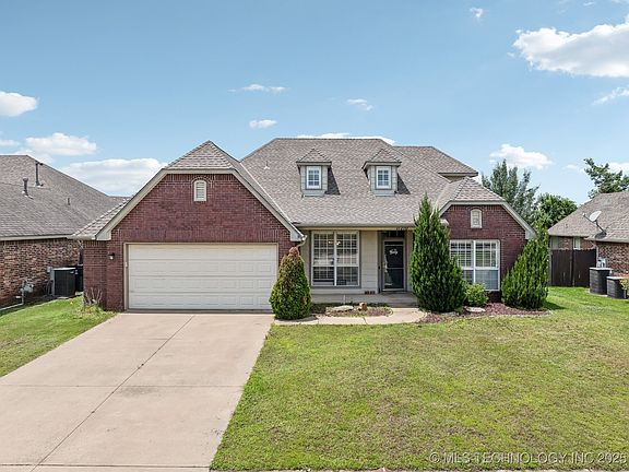 Check out this Owasso 2006-built full brick home offering 5 bedrooms, plus office or formal dining, 3 full baths, 2-car garage with work space & safe room! Open, split bedroom plan. Granite kitchen w/huge snack bar, stainless steel appliances, and corner pantry. A wall of windows brings natural light in the living room, with corner fireplace & easy-care tile floor. In the primary suite, you'll love the seasonal WIC & luxury bath featuring double sink, corner jetted tub, separate shower, and linen closet. 2nd and 3rd bedrooms, both with double-door closets, share a full hall bath downstairs. Upstairs are the 4th and 5th bedrooms, both with closets. The 5th bedroom could be a game room and has a full bath and closet. Zoned HVAC (downstairs air unit replaced 2024). Roof approx 6 years old. Covered patio w/newer large concrete extended patio. Plenty of room for entertaining and grilling! Inside laundry. Lots of storage space. Fenced back yard, sprinkler system. Home needs some cosmetic TLC carpet and paint, and is priced to sell. Close to schools, shopping, parks, and hospitals. Room for a garden, or a pool! <15 min to Oologah Lake. Call your Realtor today to schedule a showing!