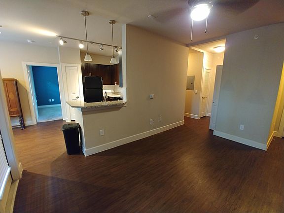 Beautiful, gated, newer complex with granite countertops, 9-ft. ceilings, ceiling fans, linen closet, food pantry, dining room, built-in desk, soaker tub, walk-in closet, W/D, and roomy, covered deck. Secluded location facing trees, private and quiet. First level. Amenities include large pool, clubhouse, and exercise room. Lease expires April 23--looking for short-term tenant, or someone who might want to renew lease on this unique unit. Gas, water, and valet trash included in rent. Tenant pays electricity. $75 application fee. Pets $15/month.