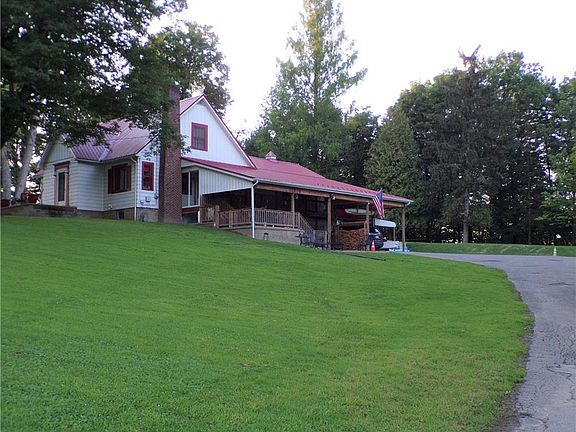 Tucked in the Hillside this 1 1/2 Story Home Offers over 2200 Sq.Ft. Situated on 3.6 Acres. Applianced Eat-in Kitchen w/Seating & Woodburning Fireplace. Dining Rm, Awesome Great Room w/access to covered Deck which extends to Kitchen Area. 2 Bedrooms on 1st Flr, Open Knotty Pine Large Masterbedroom on 2nd Floor w/fullbath. 1st Flr Laundry & Fullbath. Lower Level Bedroom/Man Cave w/Shower/sink. Integral 2+ Garage extends out to covered Parking area. Lots of Wide Open Spaces Yet Close to Shopping.