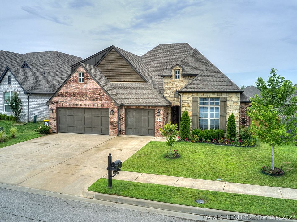 This immaculate 3293 SF home built by Executive Homes has it all: a great location in the desirable Oakridge community (Jenks Schools) near the Creek Turnpike and Highway 75. Beautifully designed interior spaces, flex rooms to fit your lifestyle, fantastic storage AND a gorgeous private patio and backyard! The floor plan is perfect for gathering and entertaining, with a large dining area and a spacious great room featuring a stone fireplace, furniture-style bookshelves and beamed ceilings. Kitchen is open to the great room, where guests can gather around the stunning granite island. The kitchen is accented with a wood ceiling and offers abundant countertops, a gas cooktop with pot-filler and a corner walk-in pantry. An additional flex room on the main floor can serve as a game room or dedicated office. The main floor also includes 3 of the 4 bedrooms, with a master suite that conveniently accesses the back patio and laundry room. In the master suite, you’ll find a walk-in shower, whirlpool tub and walk-in closet with extensive storage. The other two main floor bedrooms have access to a full hall bath, with a half powder bath also available for guests. Busy families will love the drop zone with cubbies! Upstairs are an additional bedroom, hall bath and game/theater room with projector and screen, plus two walk-out storage areas. Outside, enjoy the vaulted covered patio with pergola extension and private, fenced yard…or take advantage of the neighborhood park and walking trails!