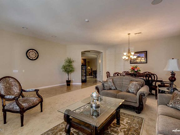 Pristine 4 bed plus den, 3 bath, in prime Mesa community. Formal living and dining room, spacious open family room w/ stone fireplace, plantation shutters, surround sound throughout, and lots of extra storage. Upgraded gourmet chefs kitchen with granite counters, large island with breakfast bar, double wall oven, and ample cabinet space. Huge master suite with walk-in closet, separate soaking tub and walk-in shower, and dual sinks with a built-in vanity. Arizona room leads out to the backyard oasis with covered patio, paver walk ways and extended patio, artificial grass, mature citrus trees, and lush landscaping. 3.5 car garage with built-in cabinets and epoxy floors. On large corner lot across the street from neighborhood park with basketball, tot lot, ramada, BBQ, and mountain views.