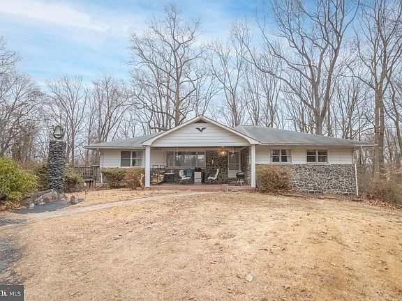 Rancher with covered front porch on 4.21 acres with outbuilding and detached garage,