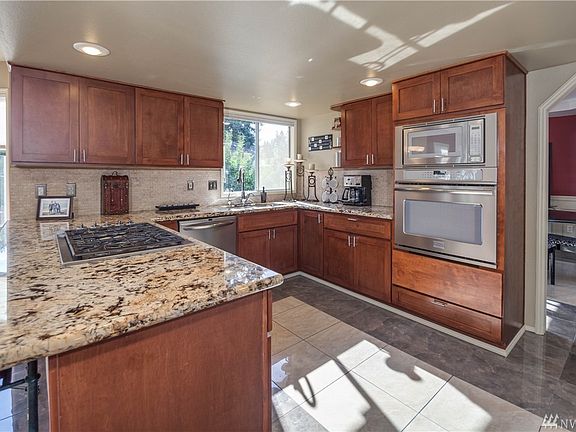 Pride of ownership evident among homes on quiet cul-de-sac. Recent kitchen remodeling includes newer appliances. New large deck off kitchen. Exterior paint apprx. one year ago, interior paint apprx. 3 years ago. New carpet. Fully finished basement with separate entrance; plumbed, wired, and has potential for extended living or rental income. 220V in 2 downstairs locations available for washer/dryer stack & oven. Tile roof. Oversized garage. Security system. New water heater to be installed soon.