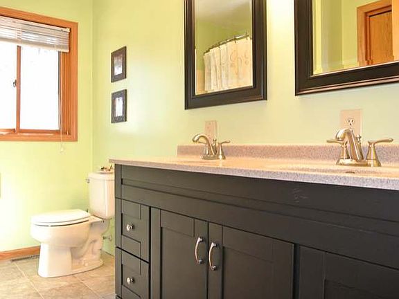 Lovely 4 bdrm, 2 bth residence w/ 100' of level frontage on Little Bass Lake. Little Bass Lake boasts 45' depths & crystal clear waters, excellent for fishing, swimming & paddleboarding. This meticulously maintained home offers pleasure inside & out. Enjoy leisure times on the 20' x 24' deck, at the lakeside patio/firepit, the pier, the sandy shore, the raft, or paddling around in the rowboat or paddleboat, included with purchase! Great room features a gorgeous stone wood burning fireplace, new laminate floors, vaulted ceilings, & cedar paneling. Kitchen provides new stainless fridge, 5-burner stove/oven & microwave, & a skylight. Two spacious bedrooms & a bathroom w/new double sinks, vanity & tile floors round off the main floor. The finished lower level offers a huge family room w/new carpet, 2 addit'l bdrms, bthrm, office & big laundry/util/storage room. The blacktop drive leads to the attchd. 2 car garage w/addit. storage. Central air, newer roof, 4 bdrm POWTs & superb location!